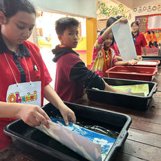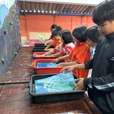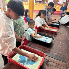 Since joining Bromsgrove International School, Thailand Jamie has been part of the Sixth Form Team, as a Tutor and more recently as University Counsellor. The BIST Sixth Form annual residential trip takes them to Baan Unrak on the Myannmar border. In Thai, Baan Unrak means "The Home of Joy", the Baan Unrak's primary mission is to provide housing, food, education, emotional support and opportunities to vulnerable children on the Thai-Myanmar border. Over the last few years Jamie has been responsible for: designing, facilitating and painting a mural for the entrance to the Baan Unrak Children's home (2023) with a team of students from Year 12. Designing and painting a mural with a team of Year 12 and Year 13 BIST students collaborating with staff and students at the local school: Tonrak Ananda Marga School, which serves both the children from Baan Unrak and the local children from the surrounding area (2024). Most recently Jamie was repsonsible for enabling a Year 13 team of stuyents to offer a cyanotype printimaking workshop as part of the 2026 STEAM week initiative at the Tonrak Ananda Marga School. (Scroll down for more images for challenge Weeks 2024- 2025 and 2026 below).
